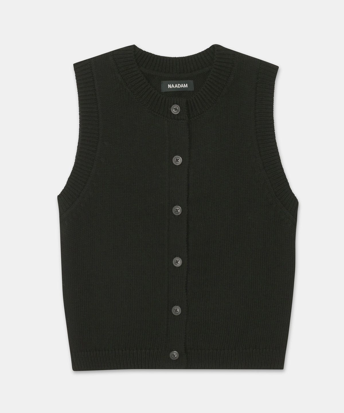 Buttoned up and breezy. The Organic Cotton Sleeveless Cardigan Vest combines the luxury of Organic Tanguis cotton with a sleek silhouette. The classic length hits at the hip, while the button front adds versatility. A naturally breathable layer that works year-round.