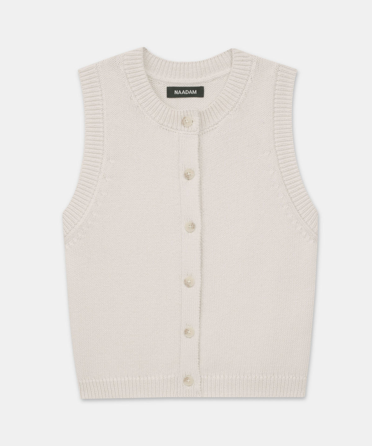 Buttoned up and breezy. The Organic Cotton Sleeveless Cardigan Vest combines the luxury of Organic Tanguis cotton with a sleek silhouette. The classic length hits at the hip, while the button front adds versatility. A naturally breathable layer that works year-round.