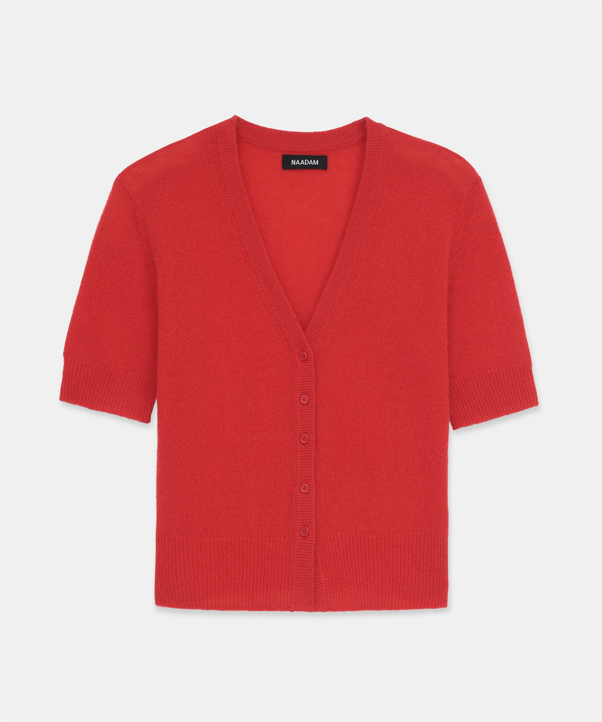 Lightweight Cashmere Short Sleeve Cardigan - Tomato