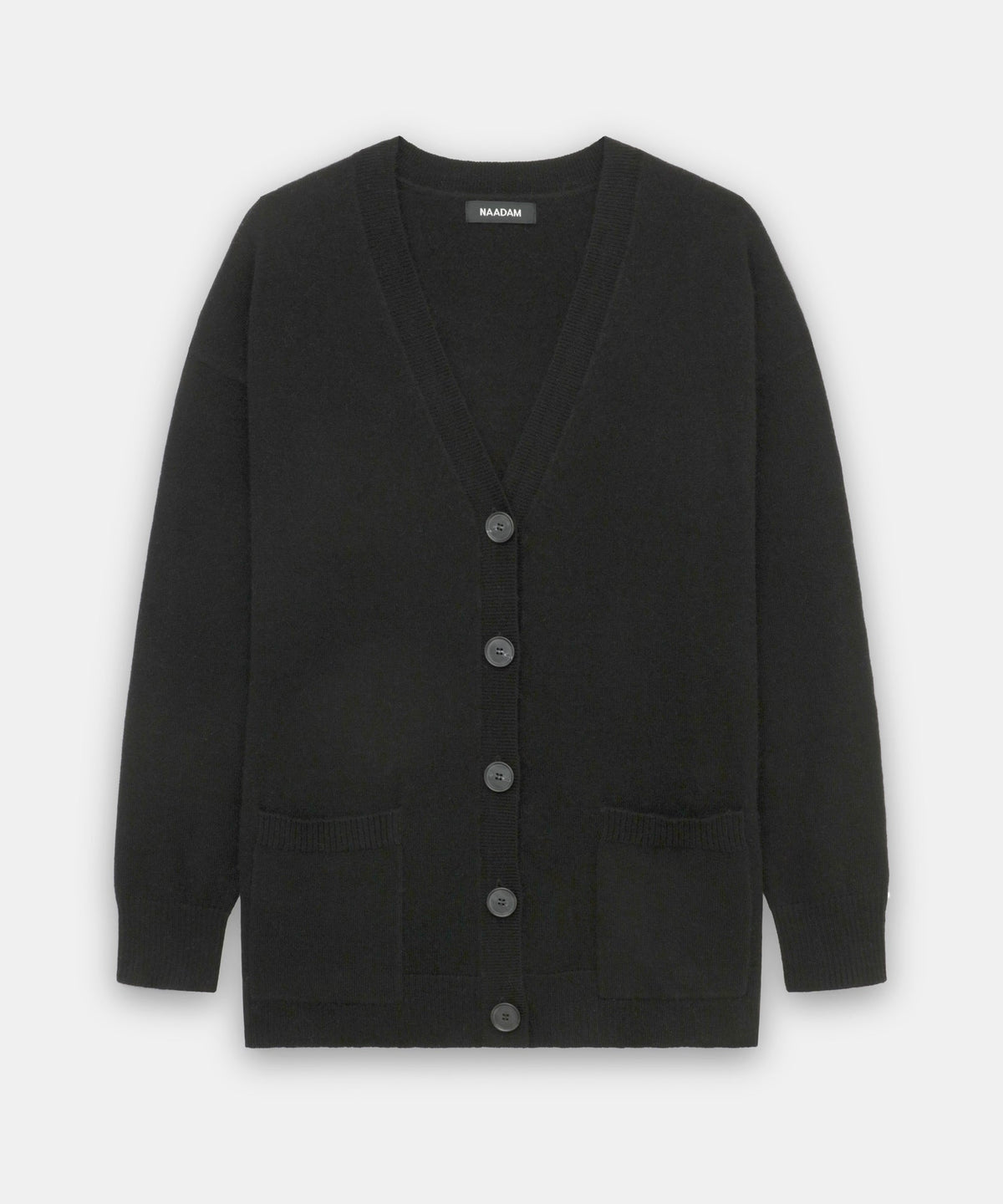 The Cashmere Boyfriend Cardigan is a soft, easygoing knit with a relaxed classic fit and tunic length. It features a deep v neckline, button front, patch pockets, and ribbed details. Crafted from 100% premium, sustainable cashmere.