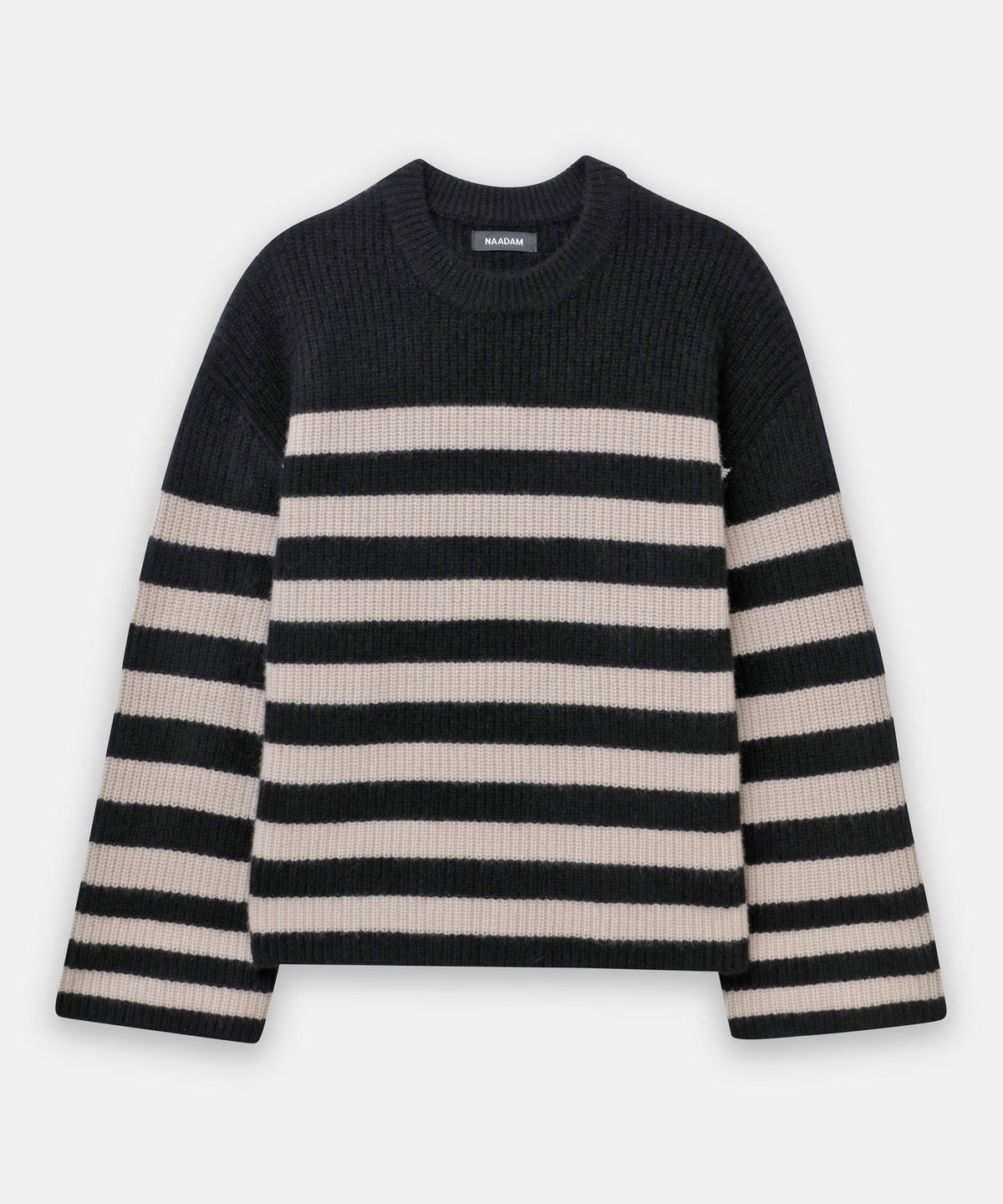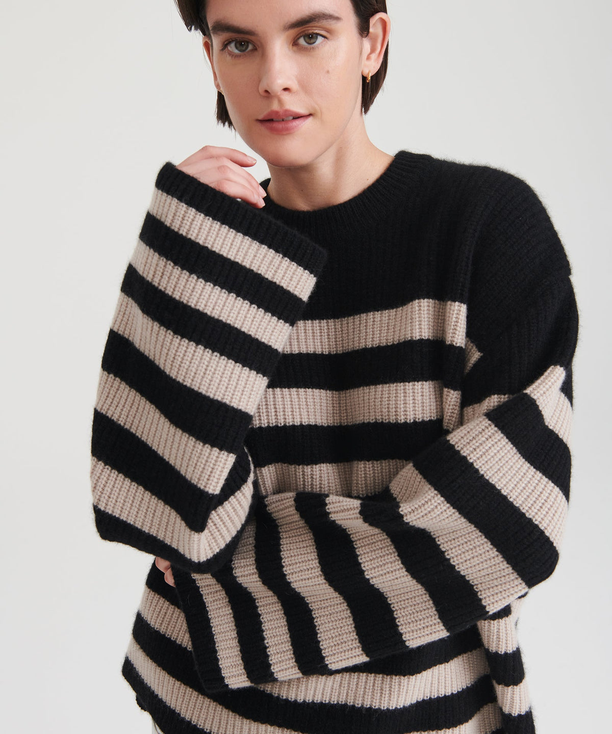 Super Luxe Cashmere Striped Crewneck - Black Combo